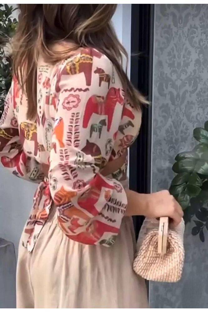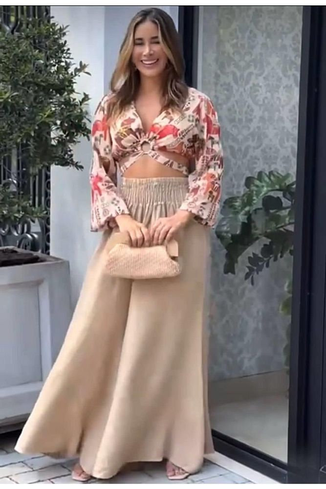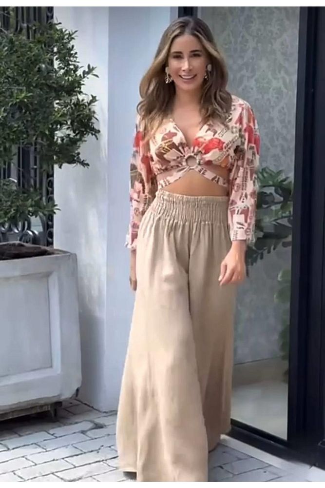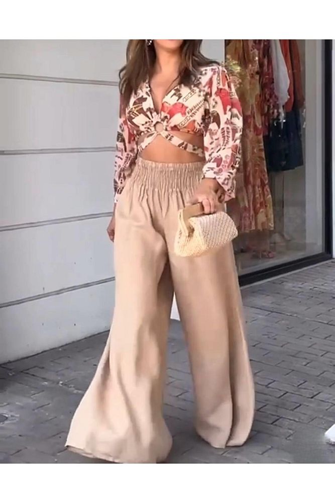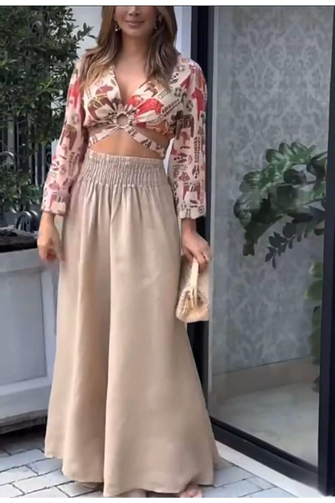 Dijital baskılı halka detaylı büstiyer ve keten gipe detaylı pantalon takım.